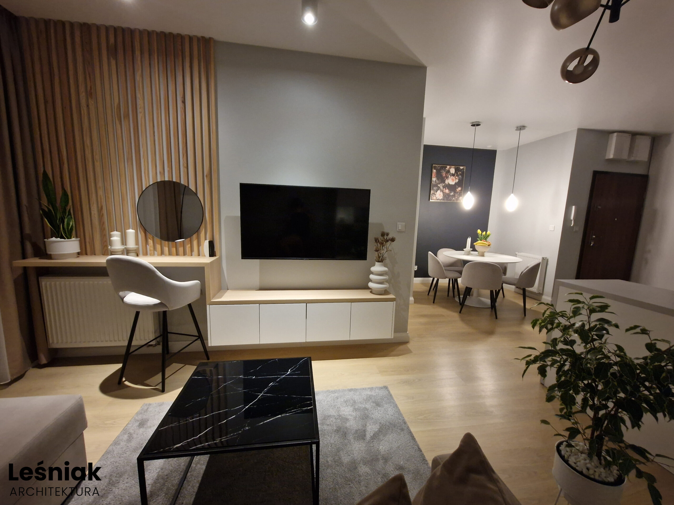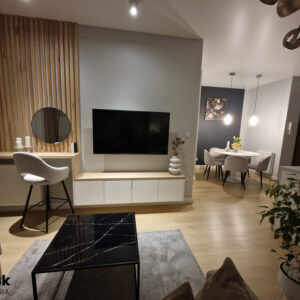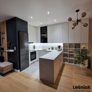 Projekt wnętrza - strefa dzienna 30 mkw.