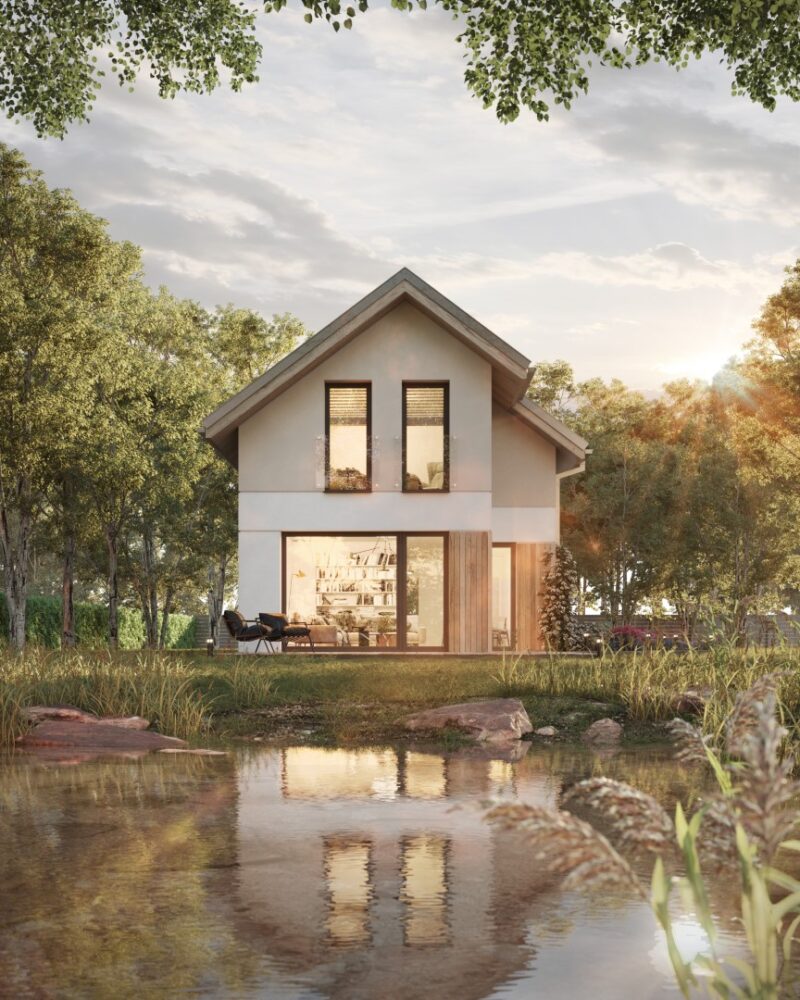 Projekt domu jednorodzinnego pod Krakowem Projekt indywidualny domu 120 m². Autor:Kamil LeśniakData:kwiecień 2023Miejscowość:KrakówPowierzchnia:120